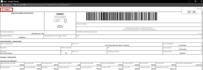 Por padrão e por questões de segurança de navegação é necessário clicar no botão “Desabilitar” que fica exatamente no mesmo lugar do “habilitar”, e em seguida “Habilitar” novamente.Após isto um botão em forma de X vermelho aparecerá no final da página: