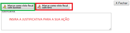Uma nova tela será aberta com um botão “MARCAR COMO VISTO FISCAL”