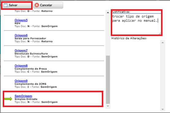 Após isso, deve-se selecionar a opção “SemOrigem” (ultima opção da lista), colocar uma justificativa de no mínimo 10 caracteres e clicar em “Salvar”, conforme a imagem