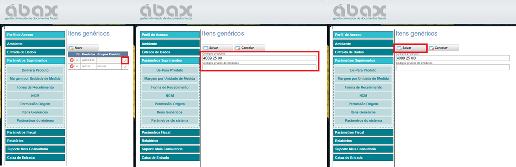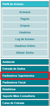 Em seguida é necessário clicar em “Parâmetros Suprimentos” e depois “Itens Genéricos”:
