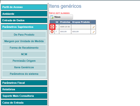• Em Ajustes > Parâmetros Suprimentos > Parâmetros do sistema, o parâmetro DeParaItensGenericos deve estar como SIM.