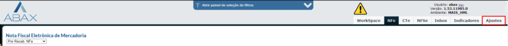 1. Ao acessar o Ábax clicar em ajustes;