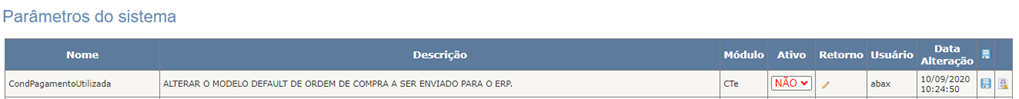 Usuário: Indica o último usuário a realizar edição deste parâmetro.