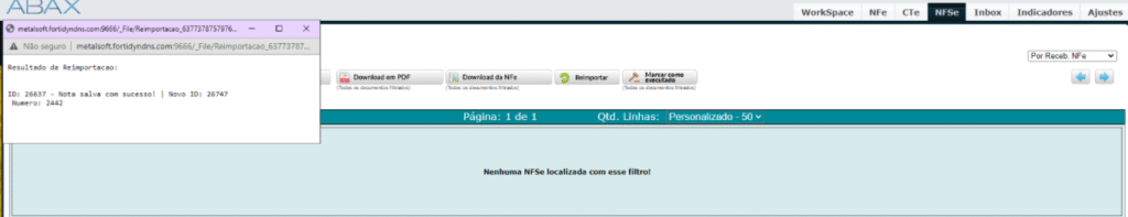 Ao reimportar uma nota de serviço, antes da correção, ao invés de citar o ID antigo para o novo ID, como ocorre nos outros módulos, em NFSe no resultado de reimportação estava aparecendo o número da NOTA, após correção foi resolvido.