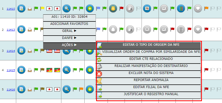 Desabilitação/retirada das ações dentro do De/Para das notas sinalizadas com bandeira branca (MIGO). Nesta melhoria, foram desabilitados todos os botões de ação dentro do De/Para das notas com ‘MIGO’.
