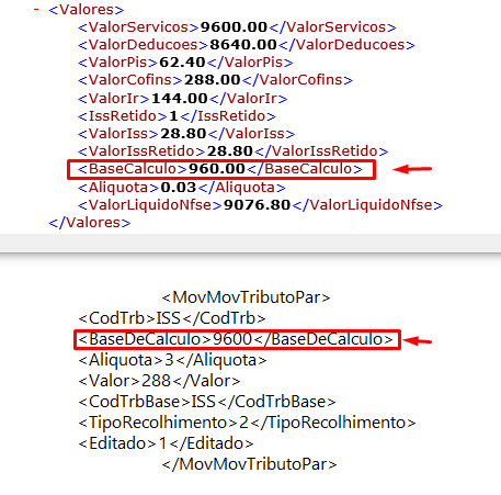 • Base de cálculo do arquivo de exportação está indo diferente do XML da nota (NFSe) da nota