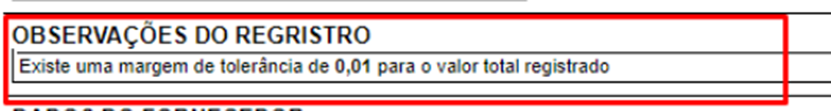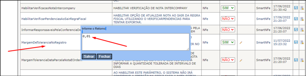 Neste chamado, o usuário solicitava uma melhoria em que fosse levado em conta a margem de tolerância na validação dos valores de registro. Foi criado um parâmetro para que essa validação ocorra e pode ser encontrada uma mensagem referente a esta margem ao clicar no diamante.