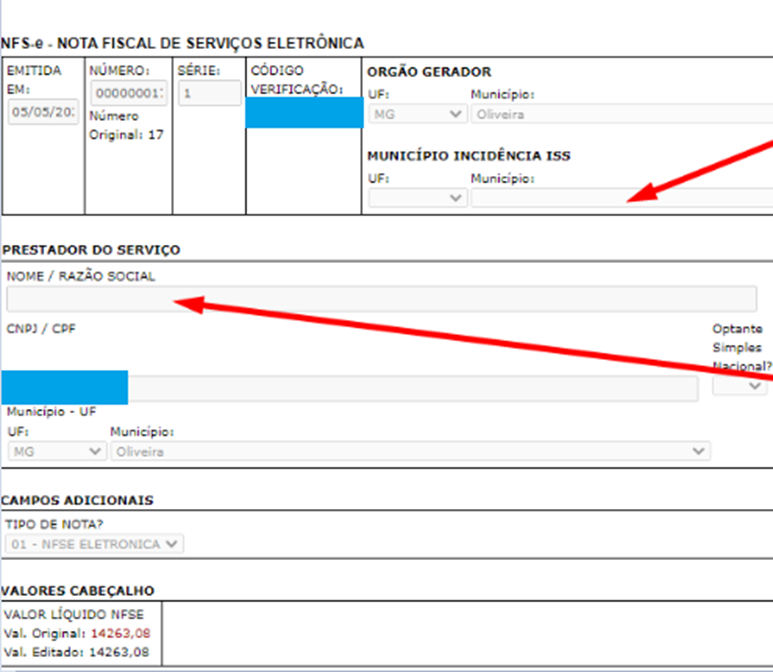 – Nome do prestador (não era inserido na nota, nem na tela de preenchimento);