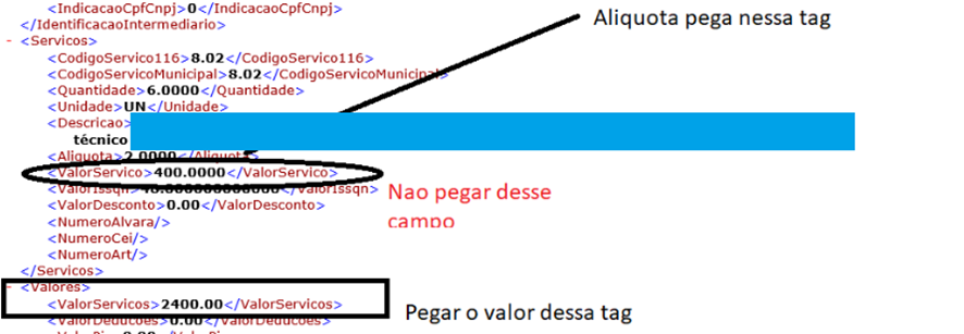 Neste chamado, o XML apresenta dois campos ‘valor serviço’. O Ábax puxava o valor apresentado no primeiro campo, quando deveria puxar do segundo. Correção realizada e disponibilizada nesta versão.