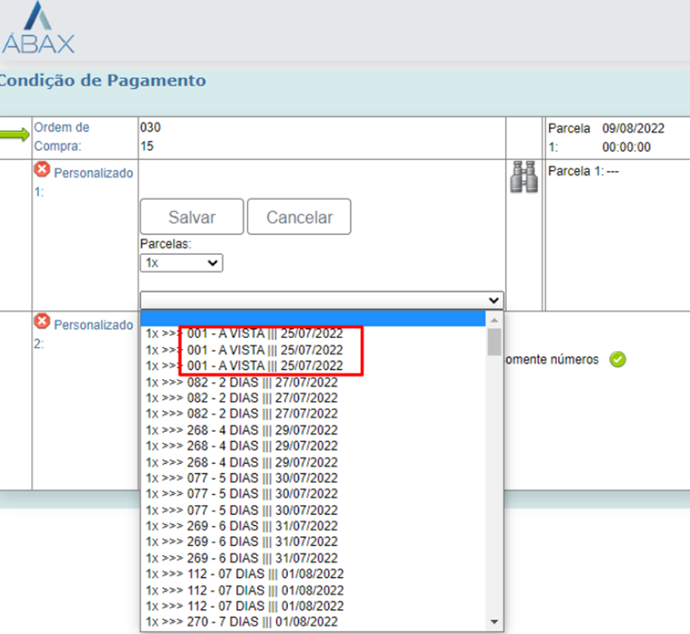 Havia um incidente em que estava apresentando as condições de pagamento de forma triplicada. Foi ajustado o parâmetro ‘ConfigurarTamanhoBuscaFilialSE4’ (Configure SIM para NFe) e o erro não acontece novamente.