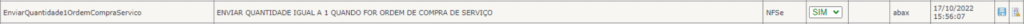 Para clientes que controlam o saldo de OC de serviço por valor, foi implementada uma melhoria através de um novo parâmetro para que o campo ‘Quantidade’ seja enviado com o valor 1 para NFSE.