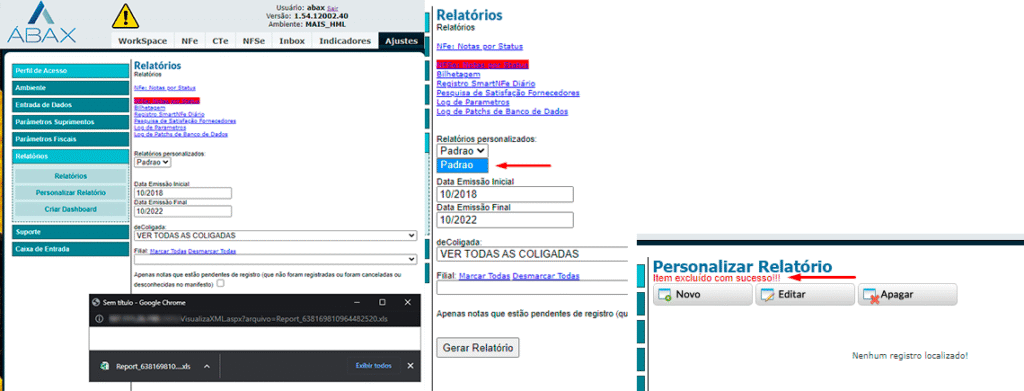 Foram corrigidas falhas onde não era possível gerar relatórios, apaga-los e havia acúmulo de títulos de relatórios.