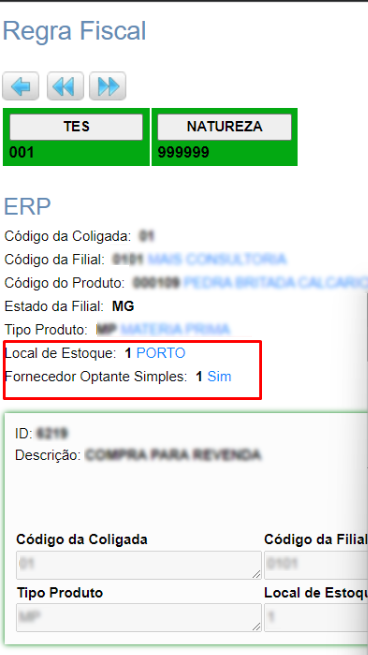 Foram criados os campos IN_ERP_FORNECEDOR_OPTANTESIMPLES e IN_RM_LOCALESTOQUE na Regra fiscal V3 – NFe