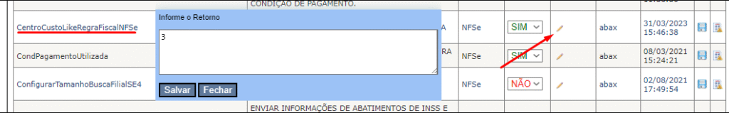 Implementado o lápis para editar o tamanho do campo no parâmetro CentroCustoLikeRegraFiscalNFSe.
