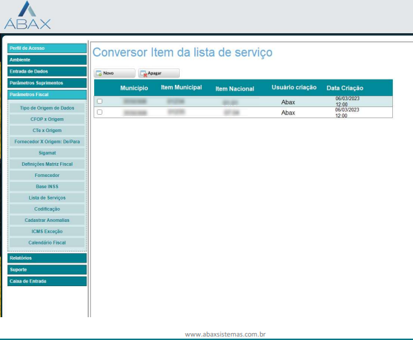 Foi criada uma tabela no Ábax para que o usuário possa realizar o cadastro dos itens da lista de serviços de São Paulo e indicar qual o item correspondente da Lei 116.