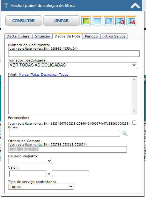 Foi implementado o filtro de ordem de compras também para a aba de CTe.