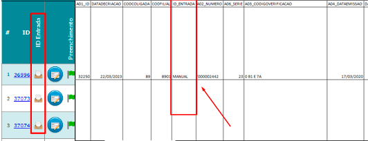 Adicionada à coluna ID_ENTRADA na planilha do excel gerada na função Exportar.xls.
