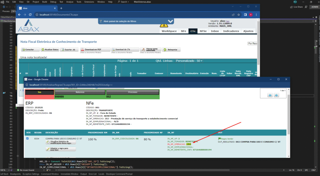 Foi identificado que o ábax não estava enviando o código do movimento da matriz fiscal. Com isso, foi realizada a inserção do campo “IN_ERP_OPERACAO”, que antes não era implementado na Regra fiscal 3 de NFSe, e também foi feita a correção de onde o campo “CNAE” é consultado.