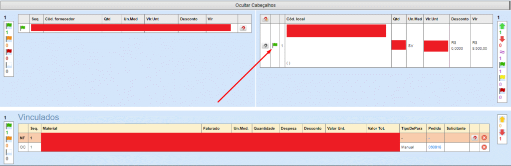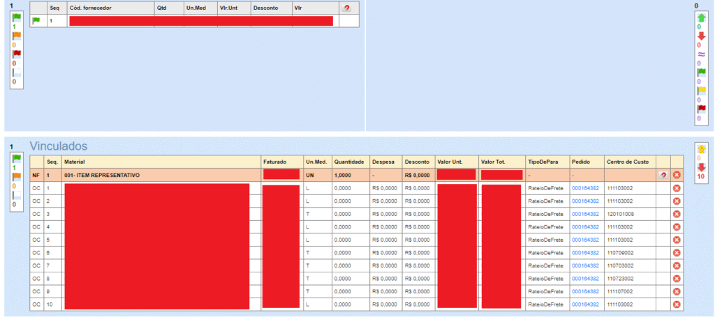 Foi identificado que algumas notas estavam sendo classificadas como “bandeira laranja” na ordem de compra e como “bandeira vermelha” na informação complementar, mesmo que não houvesse uma ordem vinculada. Portanto, a classificação correta deveria ser “vermelha” na ordem de compra, e na informação complementar, não deveria ser registrada nenhuma pendência. Com isso, foi realizado a correção do mesmo, retornando assim o comportamento padrão.