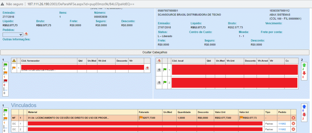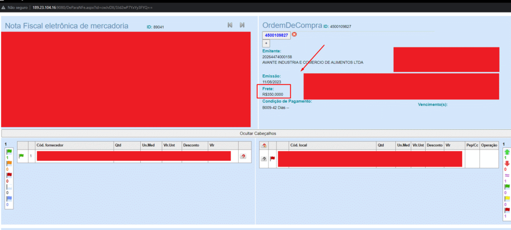• NFe – Validar valor Frete na tela do de/para