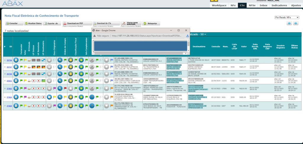 • Erro no Download CTE PDF