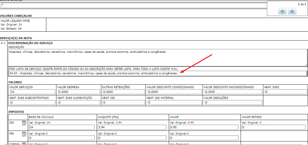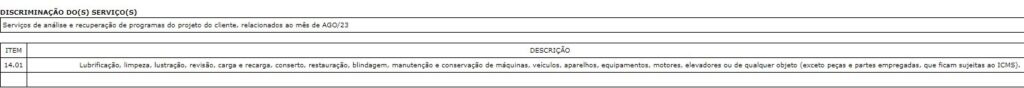 Foi identificado a necessidade de realização sobre a correção da discriminação do serviço e do item da lista de serviço.
