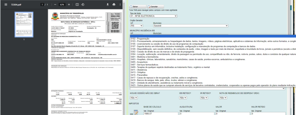 Foi solicitado que fosse realizado o mapeamento correto de um PDF que apresentava alguns erros. Com isso, foi identificada diversificação nas datas de emissão, números dos documentos e valor total.