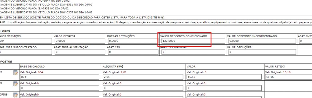 • Valor do Desconto NFS