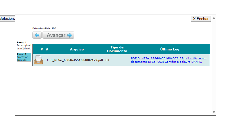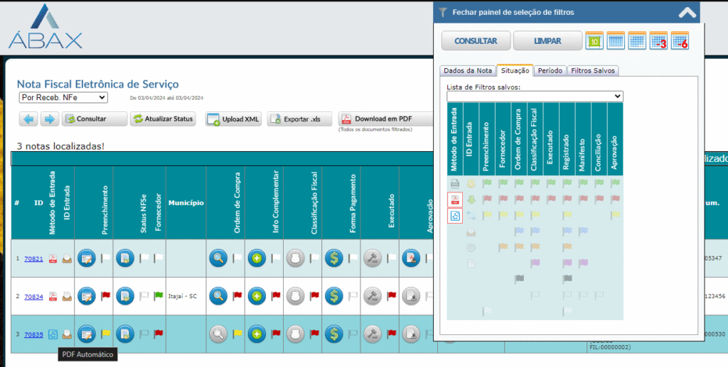 Os ícones que indicam se o PDF é mapeado ou não, exibidos na coluna de Método de Entrada, estavam desconfigurados. Foi realizada a tratativa nos campos e concertado o filtro utilizando esses ícones.