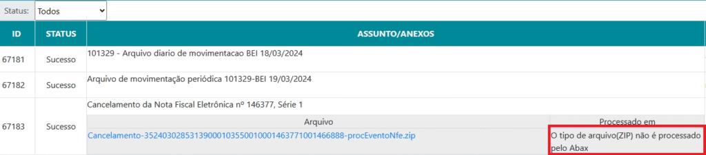 - Webservice status do documento