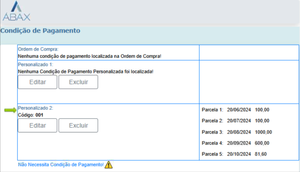 Ao utilizar apenas o número do pedido para identificar a condição de pagamento, o sistema Ábax está apresentando resultados incorretos, pois os valores podem se repetir. A consulta realizada na tabela TMOV. Foi realizada uma mudança na query que busca a condição de pagamento, solucionando o problema.