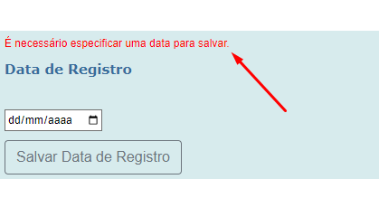 Adicionada uma verificação para impedir que o usuário salve uma data vazia no campo data de registro na tela de informações complementares.