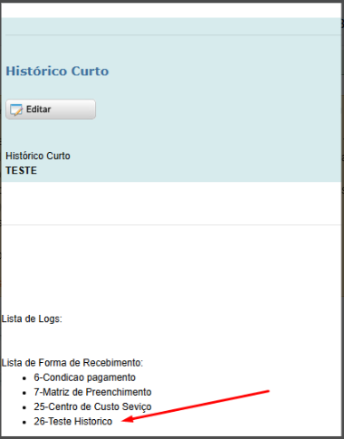 Feita correção no Histórico Curto, agora ele está salvando corretamente.