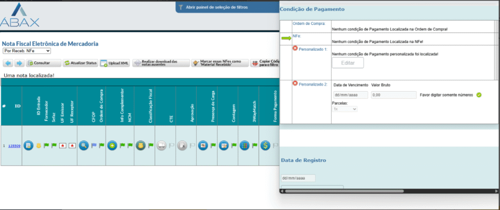 Foi realizada uma melhoria na validação das consultas às notas registradas manualmente no ERP. Agora, mesmo que elas possuam um valor diferente do Ábax, a bandeira será amarela