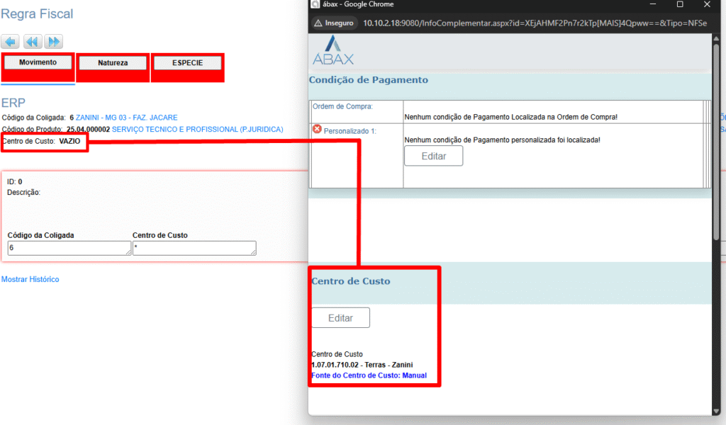 8612 – Foi corrigida a exibição do campo “Centro de Custo” na Classificação Fiscal. Agora ele está exibindo tanto o que foi encontrado no Pedido de Compras quanto o que foi editado no campo de alteração da Info Complementar.