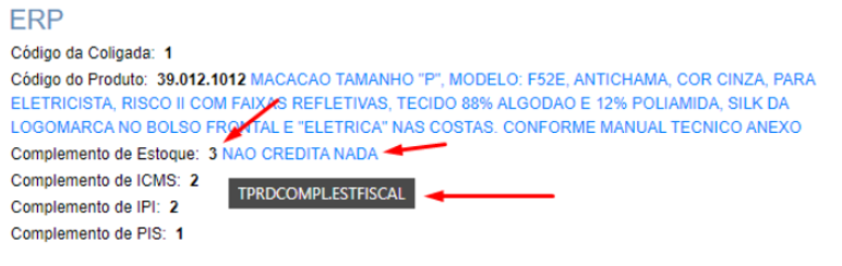• Correção do campo exibição de onde foi capturado o valor do Complemento de Estoque.